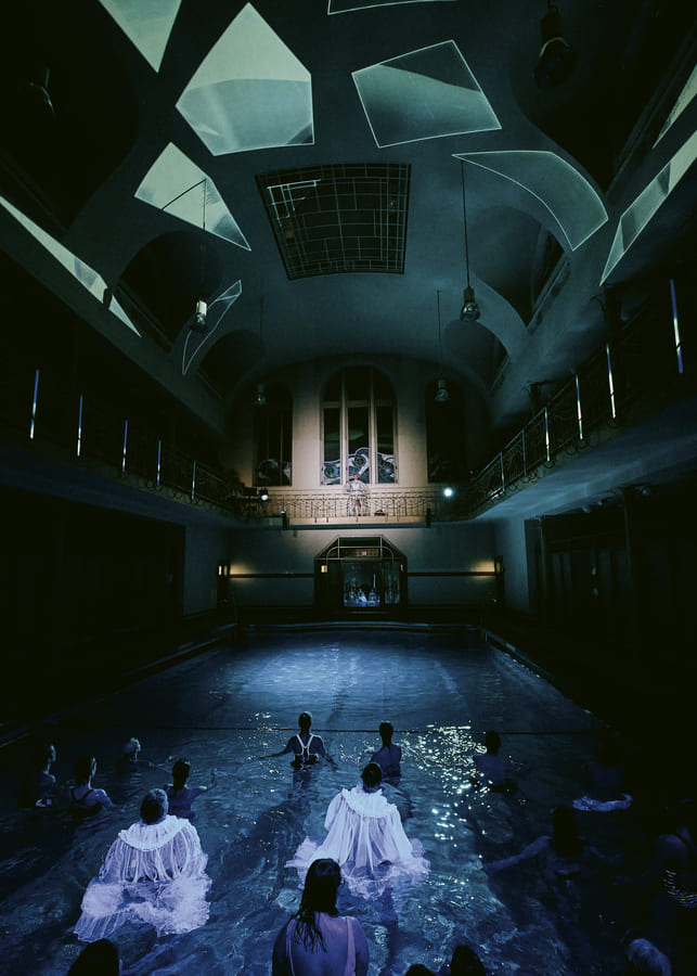 Wir schaffen einen künstlerischen Erfahrungsraum, in dem sich Musik, Text, Licht, Wasser und Körper miteinander verbinden.